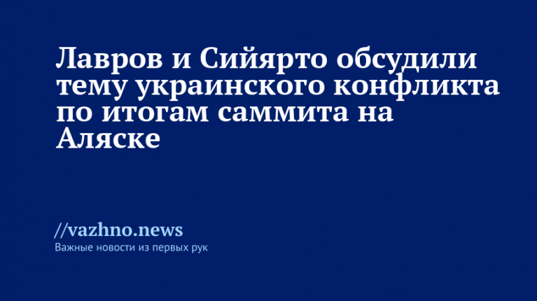 Министр иностранных дел России Сергей Лавров провел телефонный разговор с министром иностранных дел Венгрии Петером Сийярто, в ходе которого обсуждался конфликт на Украине в свете результатов российско-американского саммита, состоявшегося на Аляске. Об этом сообщили 16 августа в пресс-службе МИД России.