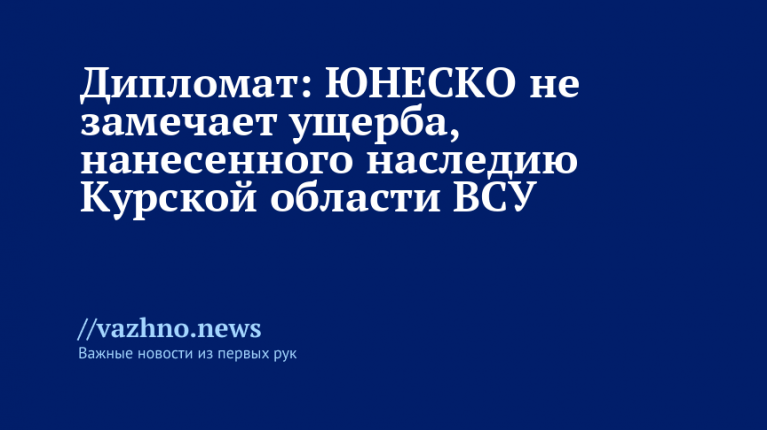 Организация Объединенных Наций по вопросам образования, науки и культуры (ЮНЕСКО) не фиксирует ущерба, который наносят Вооруженные силы Украины (ВСУ) культурному наследию в Курской области. Об этом 17 августа заявил Александр Алимов, директор департамента по многостороннему гуманитарному сотрудничеству и культурным связям МИД РФ, а также ответственный секретарь комиссии РФ по делам ЮНЕСКО.