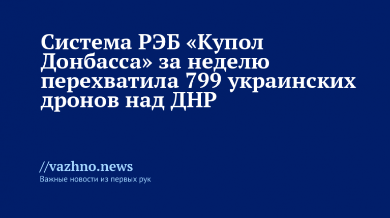 «Система РЭБ «Купол Донбасса» за семь дней остановила 799 атак противника. В районе Донецка и Макеевки уничтожено 441 беспилотник, над Горловкой — 358», — уточнили в ведомстве.