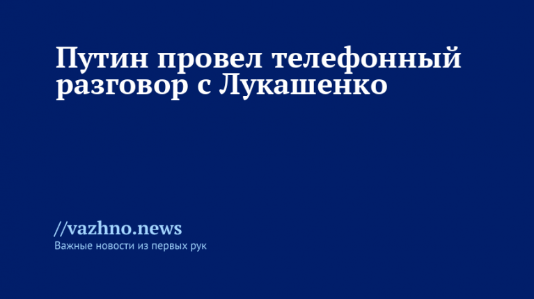 Президент России Владимир Путин провел телефонный разговор с президентом Белоруссии Александром Лукашенко. Об этом 17 августа сообщил Telegram-канал «Пул Первого», который известен своим близким отношением к пресс-службе белорусского лидера.