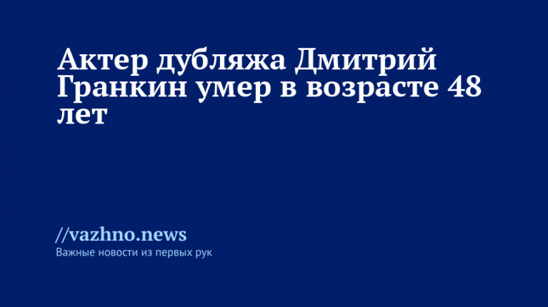 Российский актер дубляжа Дмитрий Гранкин ушел из жизни на 49-м году. Об этом стало известно 17 августа из публикации на его странице в социальной сети «ВКонтакте».