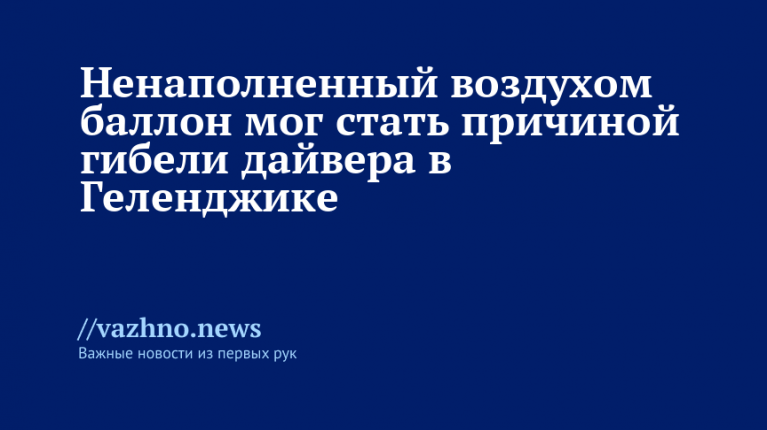 Пустой баллон, не наполненный воздухом, вероятно, стал причиной смерти дайвера во время погружения в Геленджике. Об этом 17 августа сообщил сотрудник дайвинг-центра в интервью «Известиям».