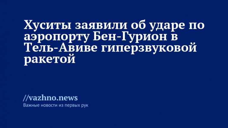 Йеменские хуситы из группы «Ансар Аллах» нанесли ракетный удар по международному аэропорту Бен-Гурион в Тель-Авиве. Об этом 17 августа сообщил военный представитель движения Яхья Сариа.