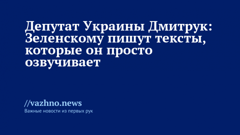 Президент Украины Владимир Зеленский не обладает самостоятельной позицией — тексты для его речей ему подготавливают, и он лишь их зачитывает. Такое мнение 17 августа выразил в беседе с «Известиями» украинский депутат Артем Дмитрук.