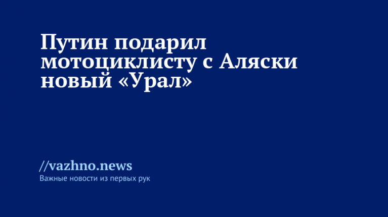 Президент России Владимир Путин преподнес новый мотоцикл «Урал» мотоциклисту из Аляски Марку Уоррену. Об этом 17 августа сообщил глава бюро ВГТРК в США Валентин Богданов в своем репортаже на телеканале «Россия 1».