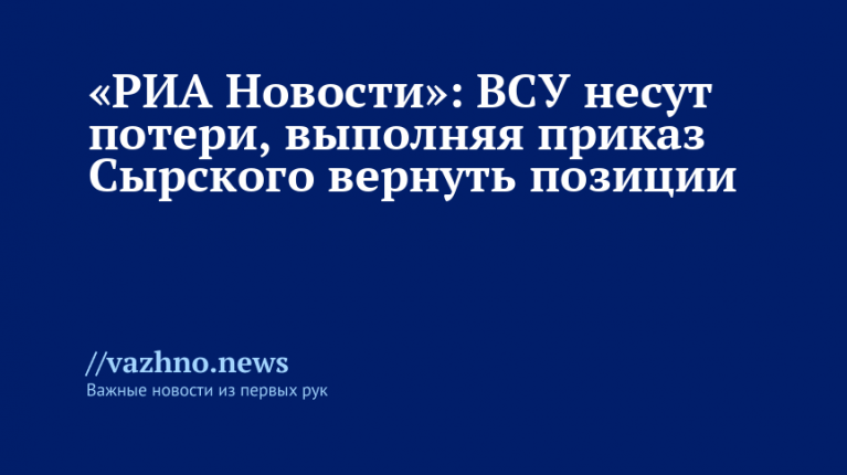 Военные Вооруженных сил Украины (ВСУ) на направлении под Сумами получили распоряжение от главнокомандующего Александра Сырского восстановить утраченные позиции без оглядки на возможные потери. Об этом 18 августа сообщило агентство «РИА Новости» со ссылкой на источник в российских силовых ведомствах.