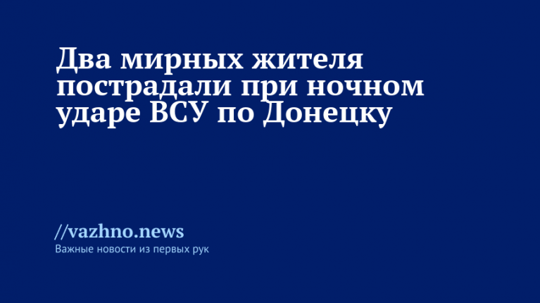 В Донецке вечером 17 августа в результате удара Вооруженных сил Украины пострадали двое мирных жителей. Об этом 18 августа сообщил глава администрации города Алексей Кулемзин.