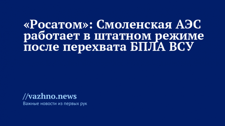 Перехват беспилотного аппарата Вооруженных сил Украины (ВСУ) не повлиял на работу Смоленской атомной электростанции (АЭС). Подробности представлены 18 августа на официальном сайте госкорпорации «Росатом».