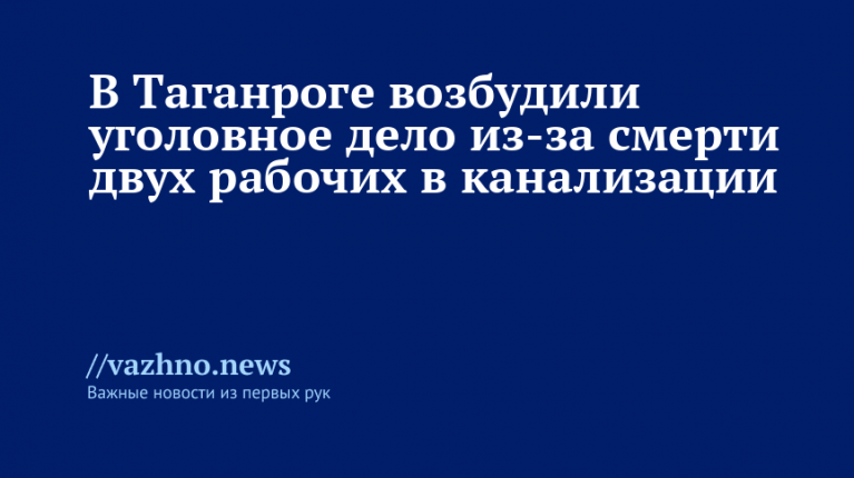 В Таганроге начато уголовное расследование по факту гибели работников в канализационном коллекторе. Об этом 18 августа сообщили в пресс-службе следственного управления (СУ) Следственного комитета (СК) России по Ростовской области.