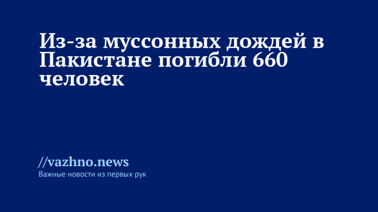 В Пакистане с конца июня, когда начался сезон муссонных дождей, зафиксировано как минимум 660 погибших и 929 раненых в результате сильных ливней и связанных с ними происшествий. Об этом 18 августа рассказала газета Caliber Az.