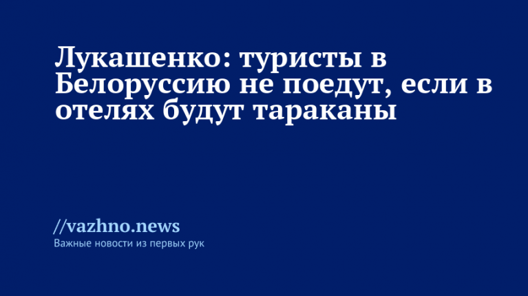 Президент Белоруссии Александр Лукашенко заявил 18 августа на совещании с руководством Совета министров, что если в гостиницах страны будут ползать тараканы, иностранные туристы перестанут приезжать в Белоруссию.