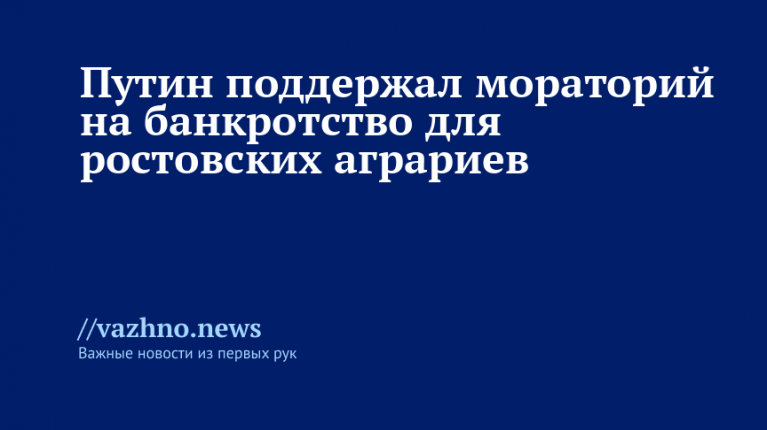 Путин одобрил мораторий на банкротство для аграриев Ростова