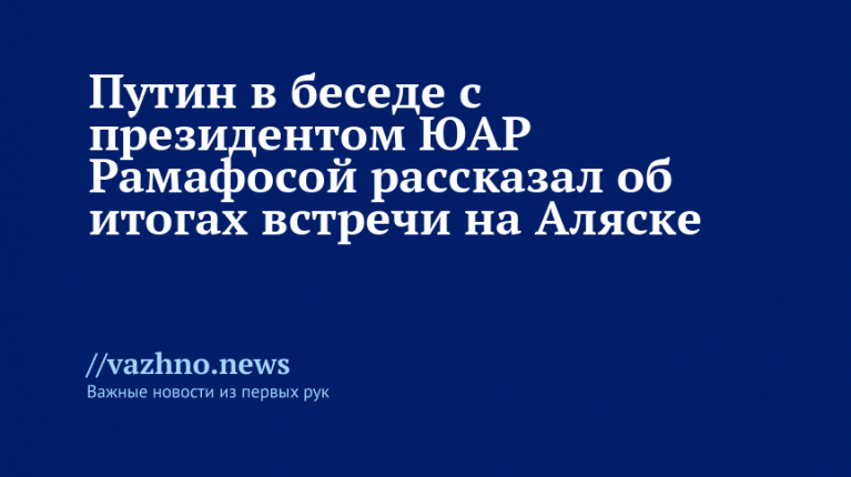 Путин поделился с собеседником главными результатами российско-американских переговоров на высшем уровне, которые состоялись на Аляске. В ответ Рамафоса выразил поддержку дипломатическим мерам, направленным на мирное разрешение украинского кризиса.