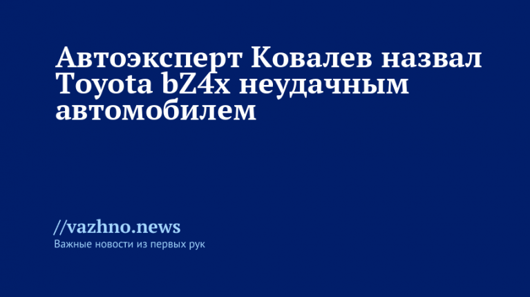 В линейке автомобилей Toyota есть модели, которые явно не удались, и одной из них стал первый электрокар бренда — bZ4x. Об этом 18 августа сообщил автомобильный эксперт Александр Ковалев.