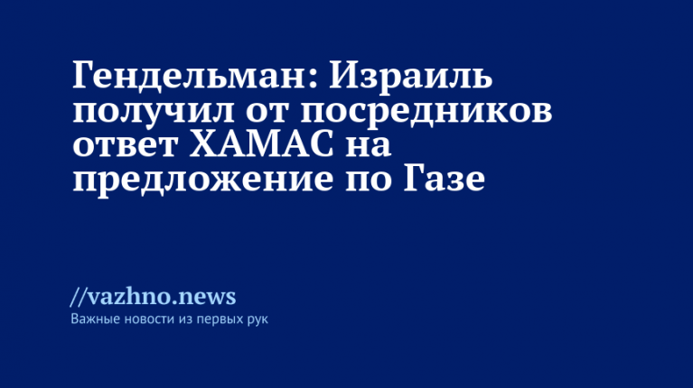 Гендельман: Израиль получил ответ ХАМАС через посредников по Газе