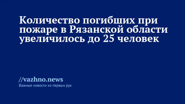 Число жертв пожара на предприятии в Рязанской области возросло до 25 человек. Об этом 19 августа сообщили в МЧС России.