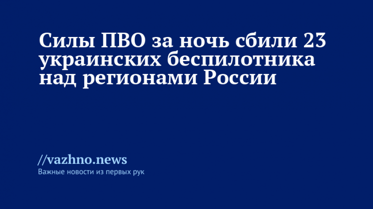 «В течение минувшей ночи дежурными средствами ПВО были перехвачены и уничтожены 23 украинских беспилотника самолетного типа», — говорится в сообщении ведомства в Telegram-канале.