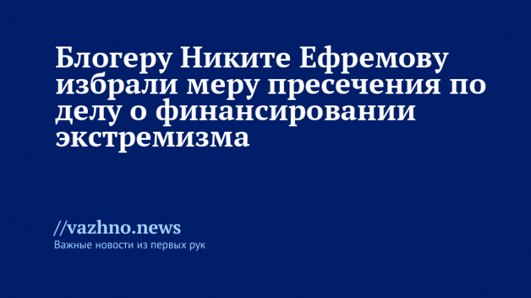 Уточняется, что Никита Ефремов обвиняется по части 1 статьи 282.3 УК РФ — «Финансирование экстремистской деятельности».