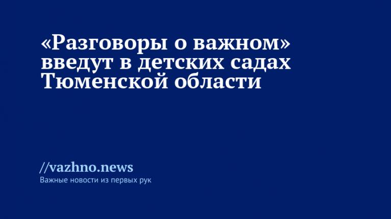Тюменская область присоединилась к проекту, в рамках которого в детских садах проведут уроки под названием «Разговоры о важном». Апробация данного проекта в дошкольных образовательных учреждениях запланирована на период с сентября по ноябрь текущего года.