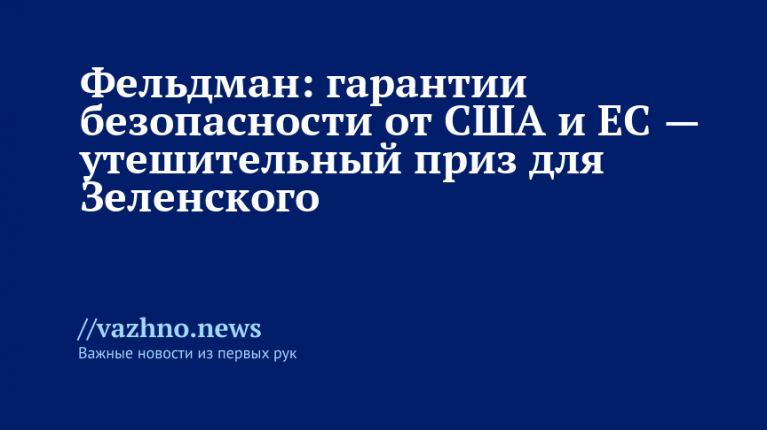 Фельдман: гарантии безопасности от США и ЕС — утешительный приз Зеленскому