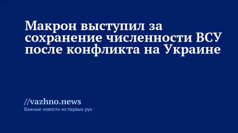 По мнению президента Франции Эммануэля Макрона, Украине необходимо сохранить высокий уровень численности своих вооруженных сил после окончания конфликта с Россией. Об этом он заявил 19 августа.