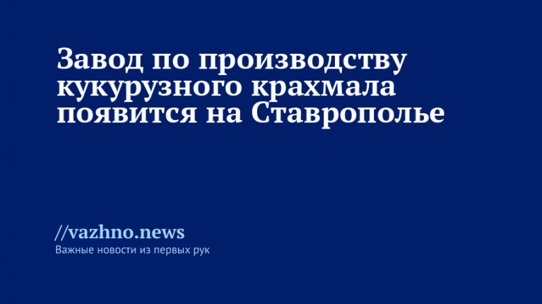 К 2028 году на территории Ставрополья планируется создание нового завода по производству модифицированного кукурузного крахмала. Место расположения предприятия — Советский округ, об этом сообщил губернатор региона Владимир Владимиров в социальных сетях во вторник, 19 августа.