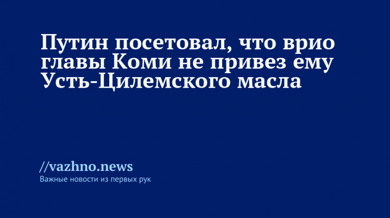 Во вторник, 19 августа, президент России Владимир Путин поинтересовался у временно исполняющего обязанности губернатора Республики Коми Ростислава Гольдштейна, привез ли он ему Усть-Цилемское масло.