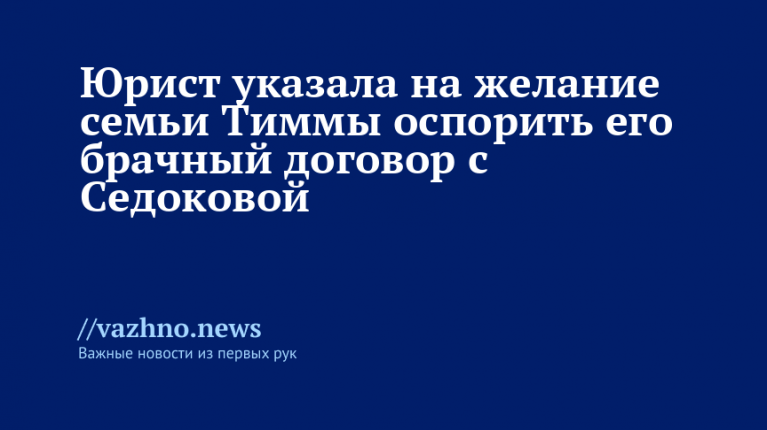 Гаврилова уточнила, что в случае признания брачного договора с Седоковой недействительным или ничтожным, семья Тиммы получит возможность оспаривать сделки, совершенные на его основании. Тогда с певицы могут взыскать долги, связанные с продажей квартир, и она должна будет вернуть их часть или всю сумму.