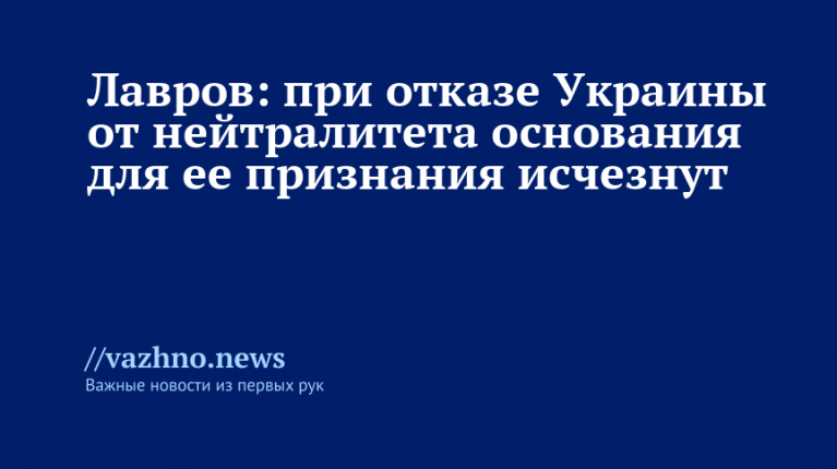 Лавров: отказ Украины от нейтралитета устранит основания для признания