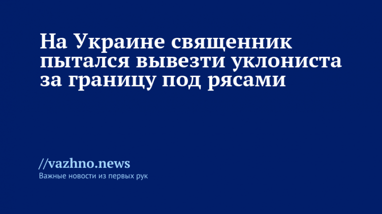 На Украине сотрудники пограничной службы задержали священнослужителя, который пытался незаконно перевезти военнообязанного в Словакию. Об этом 19 августа сообщила украинская Госпогранслужба на своем Telegram-канале.