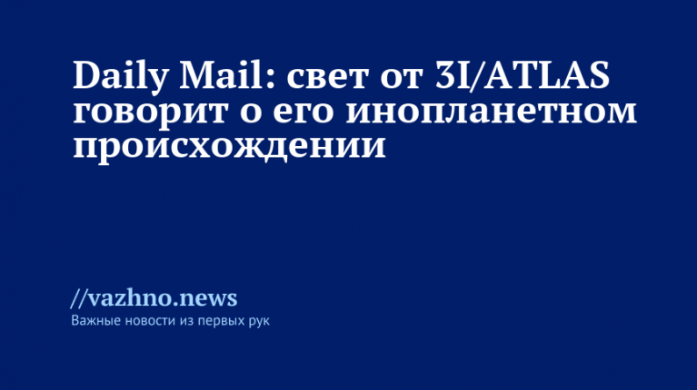 Свет, исходящий от межзвездного объекта 3I/ATLAS, может указывать на его внеземное происхождение. Об этом 19 августа сообщила газета Daily Mail.