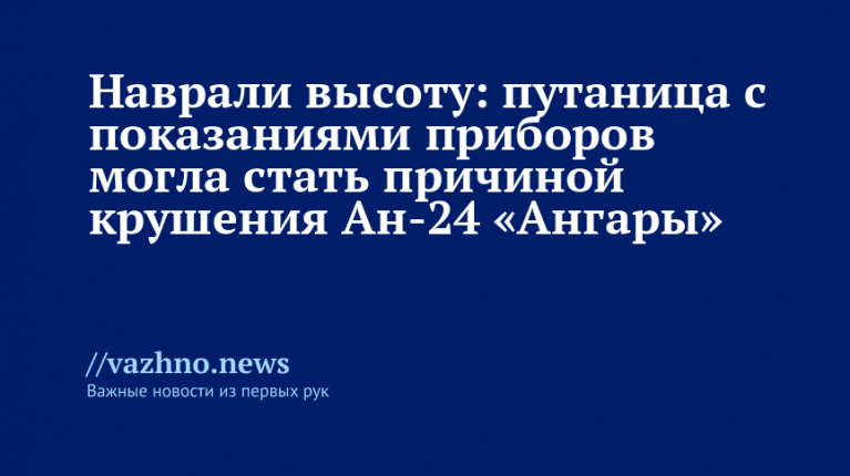 Предварительные причины аварии Ан-24 «Ангары»В ходе предварительного расследования катастрофы Ан-24 авиакомпании «Ангара» под Тындой отмечается, что возможной причиной стало смешение методов определения высоты, говорится в письме Дмитрия Ядрова к руководителям гражданской авиации. «Известия» получили доступ к этому документу. В нем указано, что при снижении экипаж установил давление на барометрических высотомерах по QNH (счёт от уровня моря), но при информировании диспетчера о высоте 1100 метров применялось значение по QFE (счёт от ВПП аэродрома).