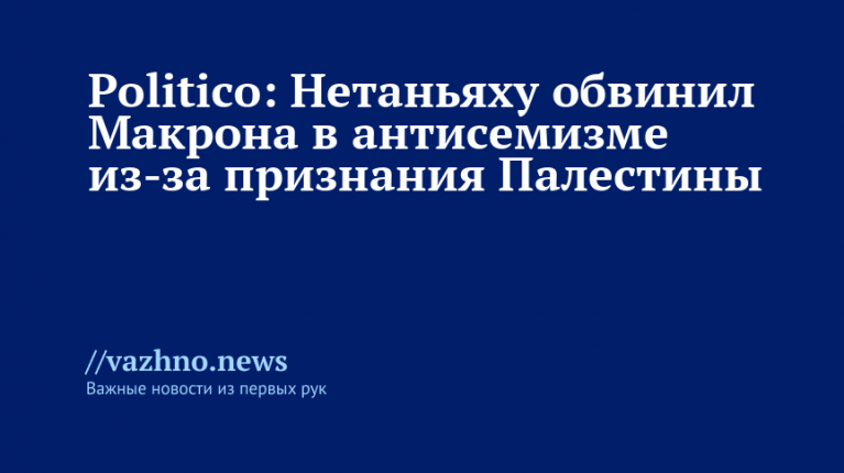 Премьер-министр Израиля Биньямин Нетаньяху обвинил президента Франции Эммануэля Макрона в проявлении антисемитизма из-за решения французского лидера признать государство Палестина. Об этом 20 августа сообщило издание Politico.