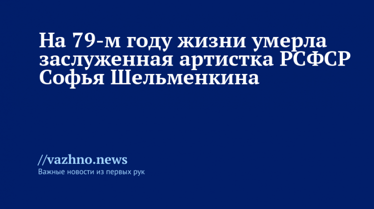 Скончалась заслуженная артистка РСФСР Софья Шельменкина в 79 лет