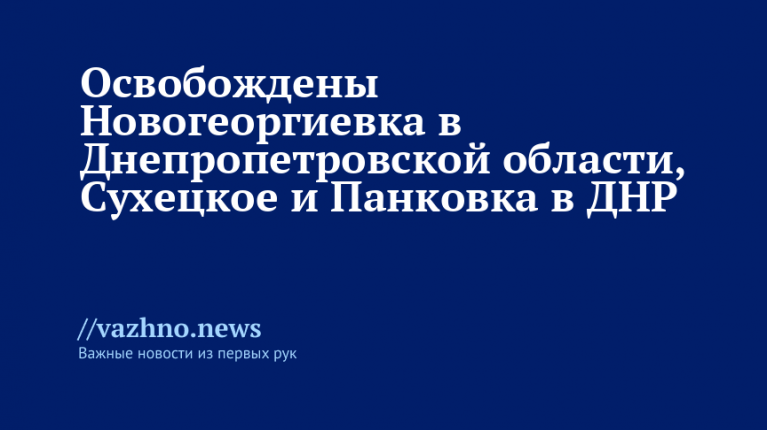 Российские вооруженные силы (ВС) освободили населенные пункты Сухецкое и Панковка в Донецкой Народной Республике (ДНР), а также село Новогеоргиевка в Днепропетровской области. Эта информация была опубликована Министерством обороны России 20 августа.