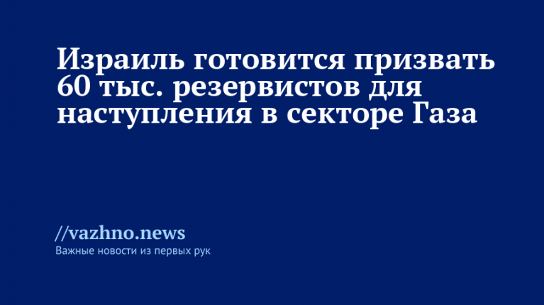 Армия обороны Израиля (ЦАХАЛ) намерена мобилизовать около 60 тысяч резервистов для усиления наступления в секторе Газа против ХАМАС, при этом параллельно рассматривается возможный ответ на новую инициативу о прекращении огня. Объявление о призыве ожидается уже 20 августа, сообщил анонимный чиновник. Это значительно увеличит число военнослужащих в районе Газы и вокруг нее.