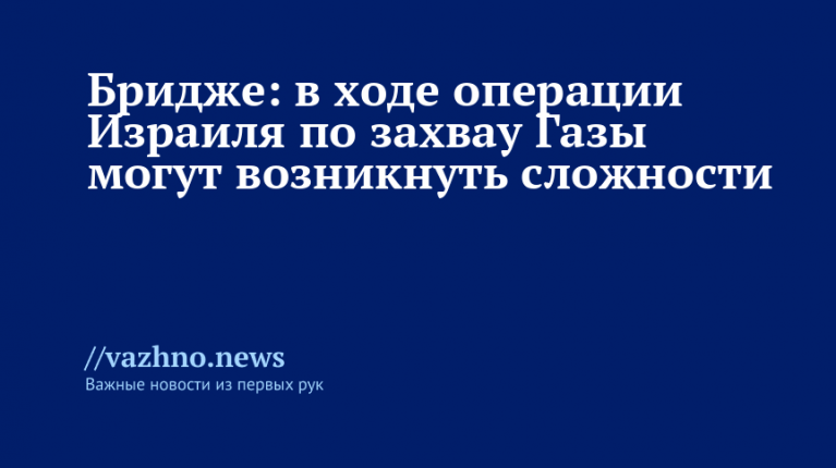 В ходе проведения операции «Колесницы Гидеона — 2», направленной на захват города Газа, у Израиля могут возникнуть серьезные трудности. Такое мнение 20 августа высказал в интервью «Известиям» политолог Дмитрий Бридже.