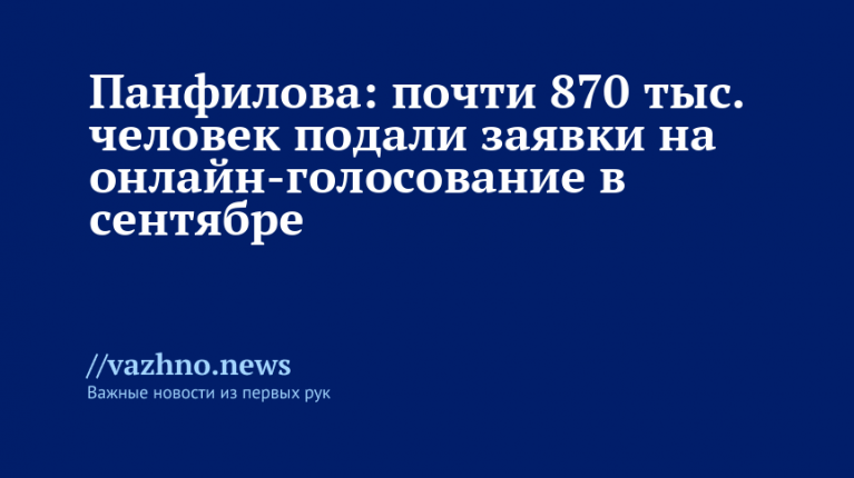 На дистанционное электронное голосование (ДЭГ), которое пройдет в сентябре в 24 регионах России, подали заявки почти 870 тысяч избирателей. Об этом 20 августа рассказала председатель Центральной избирательной комиссии (ЦИК) РФ Элла Памфилова во время заседания, трансляция которого доступна на официальном сайте комиссии.