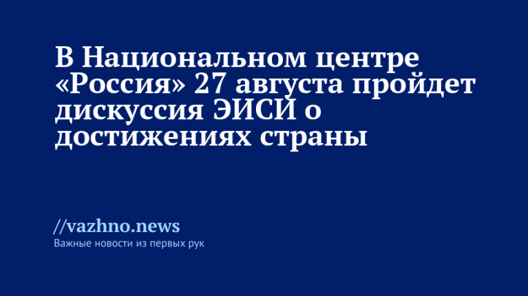 Дискуссия ЭИСИ о достижениях России пройдет 27 августа в центре «Россия»
