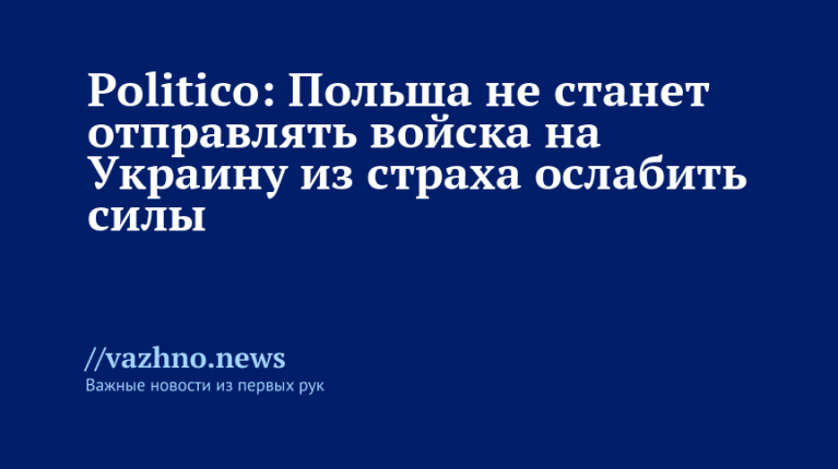 «Польша, обладающая сейчас крупнейшей армией в ЕС, исключает возможность отправки войск на Украину», — говорится в статье.
