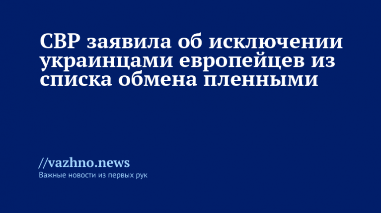 Украинские власти не вносят граждан западноевропейских стран, захваченных в плен во время боевых столкновений с Вооруженными силами Украины (ВСУ), в официальные списки для обмена пленными. Об этом сообщила 20 августа Служба внешней разведки (СВР) РФ.