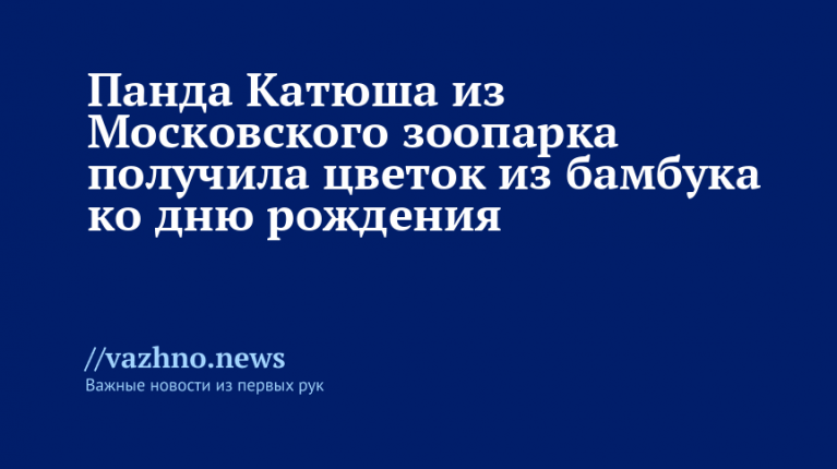 В Московском зоопарке сообщили, что в преддверии дня рождения панде Катюше преподнесли подарок — цветок, сделанный из бамбука. Информация об этом появилась в Telegram-канале столичного зоосада в среду, 20 августа.