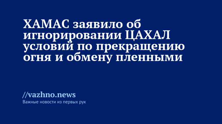 ХАМАС заявил об игнорировании ЦАХАЛ условий по прекращению огня и обмену пленными