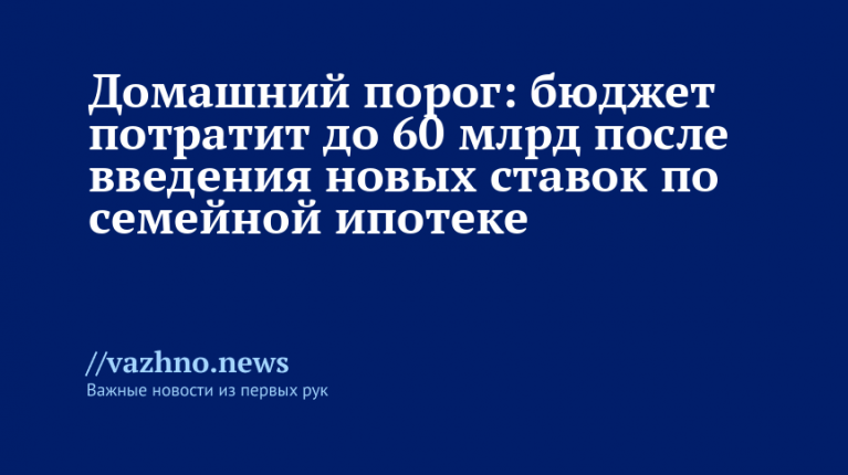 Как сообщили «Известия», российский бюджет может дополнительно потратить до 60 млрд рублей всего за шесть месяцев из-за новой системы региональных ставок по семейной ипотеке. Идею введения различных процентов для каждого субъекта РФ в зависимости от средней заработной платы озвучил председатель Госдумы Вячеслав Володин. По его словам, данную инициативу одобрил президент, что должно повысить доступность жилья в регионах страны. Однако сумма в 60 млрд рублей — это значительная часть всех расходов на программу. На данный момент государственный бюджет, фактически средства налогоплательщиков, уже покрывает почти каждую выдачу новой ипотеки. Вопрос о том, пойдет ли Министерство финансов на такие дополнительные затраты при дефиците бюджета в 4,9 трлн рублей, рассматривается в материале «Известий».