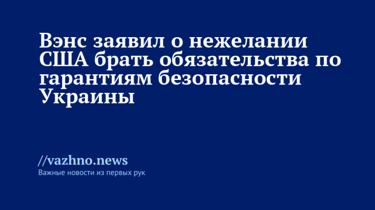 Вице-президент США Джей Ди Вэнс заявил 20 августа, что Америка не готова брать на себя обязательства по гарантиям безопасности Украины без четкого понимания условий окончания конфликта.