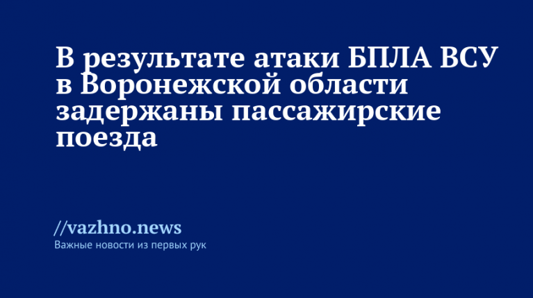 В Воронежской области из-за атаки свыше пяти беспилотников на объекты энергетической инфраструктуры возникли перебои с подачей электроэнергии и задержки в движении пассажирских поездов. Об этом 20 августа сообщил губернатор региона Александр Гусев.