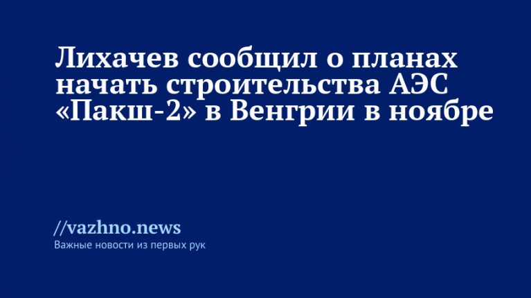Госкорпорация «Росатом» планирует начать строительство атомной электростанции (АЭС) «Пакш-2» в Венгрии в ноябре этого года. Об этом 21 августа сообщил журналистам генеральный директор корпорации Алексей Лихачев.