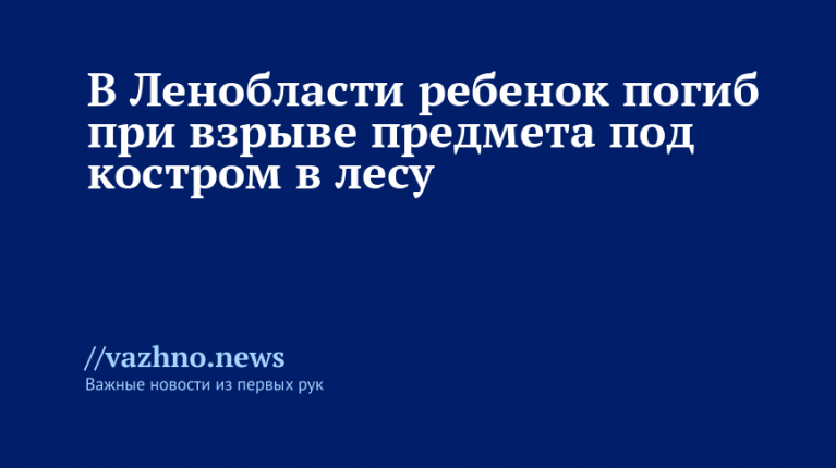 В Ленинградской области, в Кировском районе, 11-летний мальчик погиб после взрыва неизвестного предмета, найденного под костром в лесу. Об этом стало известно 21 августа из сообщения пресс-службы областной прокуратуры.