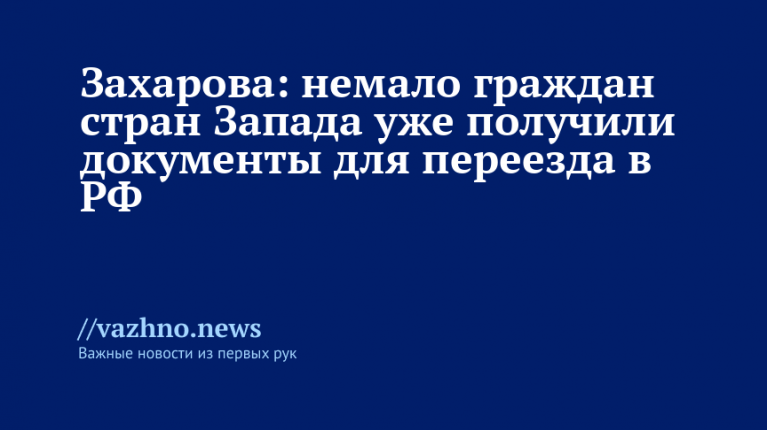 Жители западных государств все чаще подают заявки на оформление документов для переезда на территорию России. Об этом 21 августа рассказала представитель МИД РФ Мария Захарова.