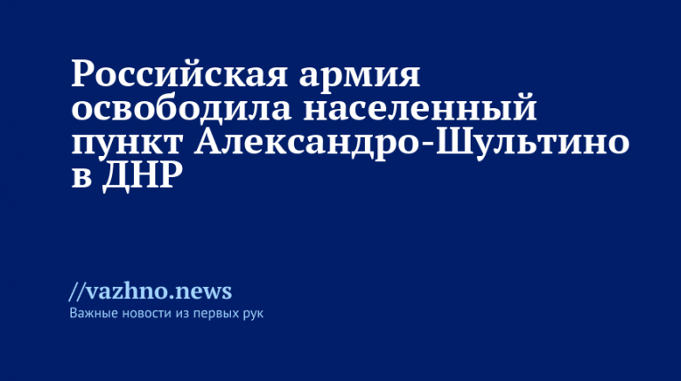 «Благодаря решительным действиям подразделений «Южной» группировки войск удалось освободить населенный пункт Александро-Шультино в Донецкой Народной Республике», — говорится в официальном заявлении.